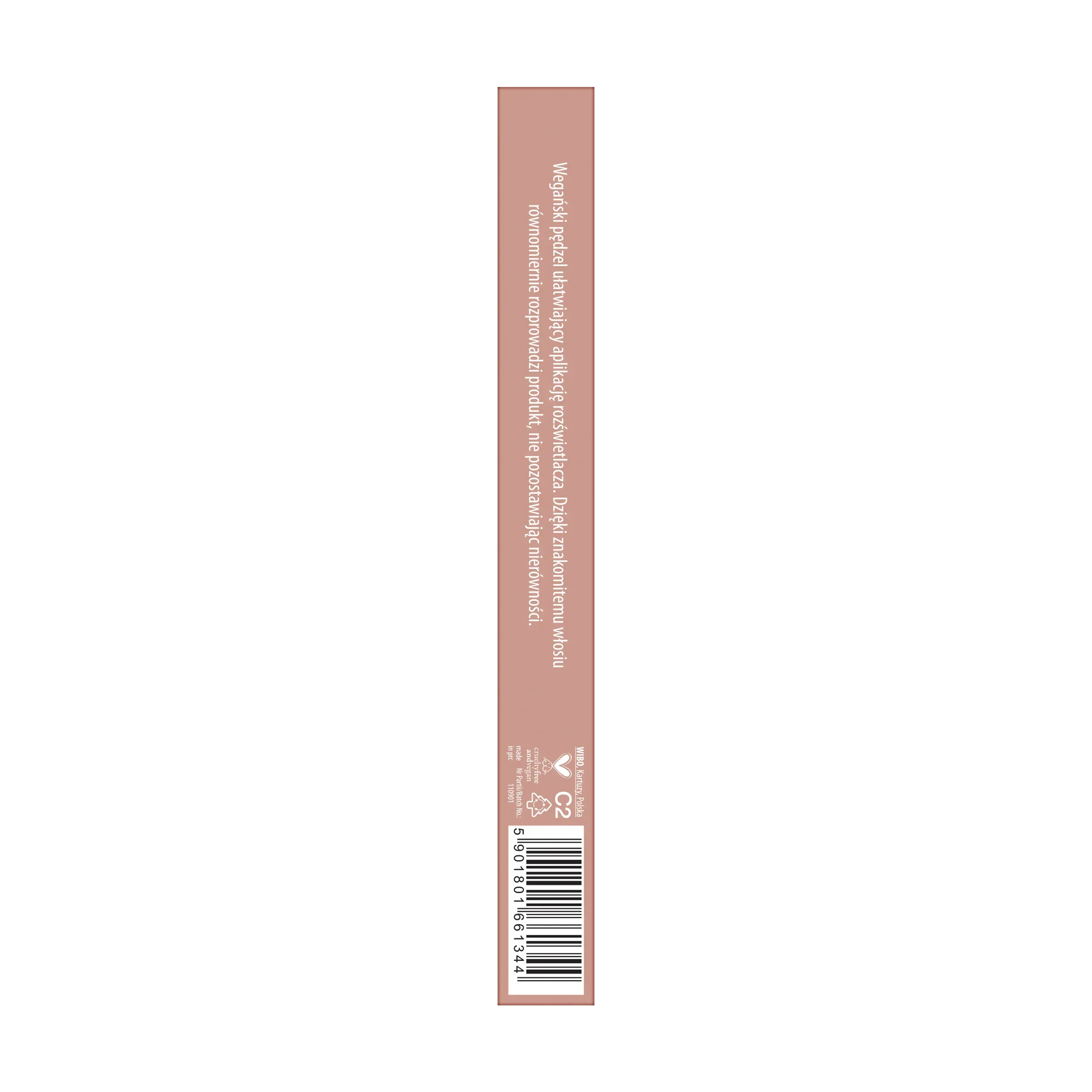 براش را روی سطح هایلایتر کشیده و با حرکات رفتوبرگشتی یا ضربهای، روی قسمتهای برجسته صورت بزنید. برای درخشش بیشتر، لایه دوم را بسیار سبک اضافه کنید.