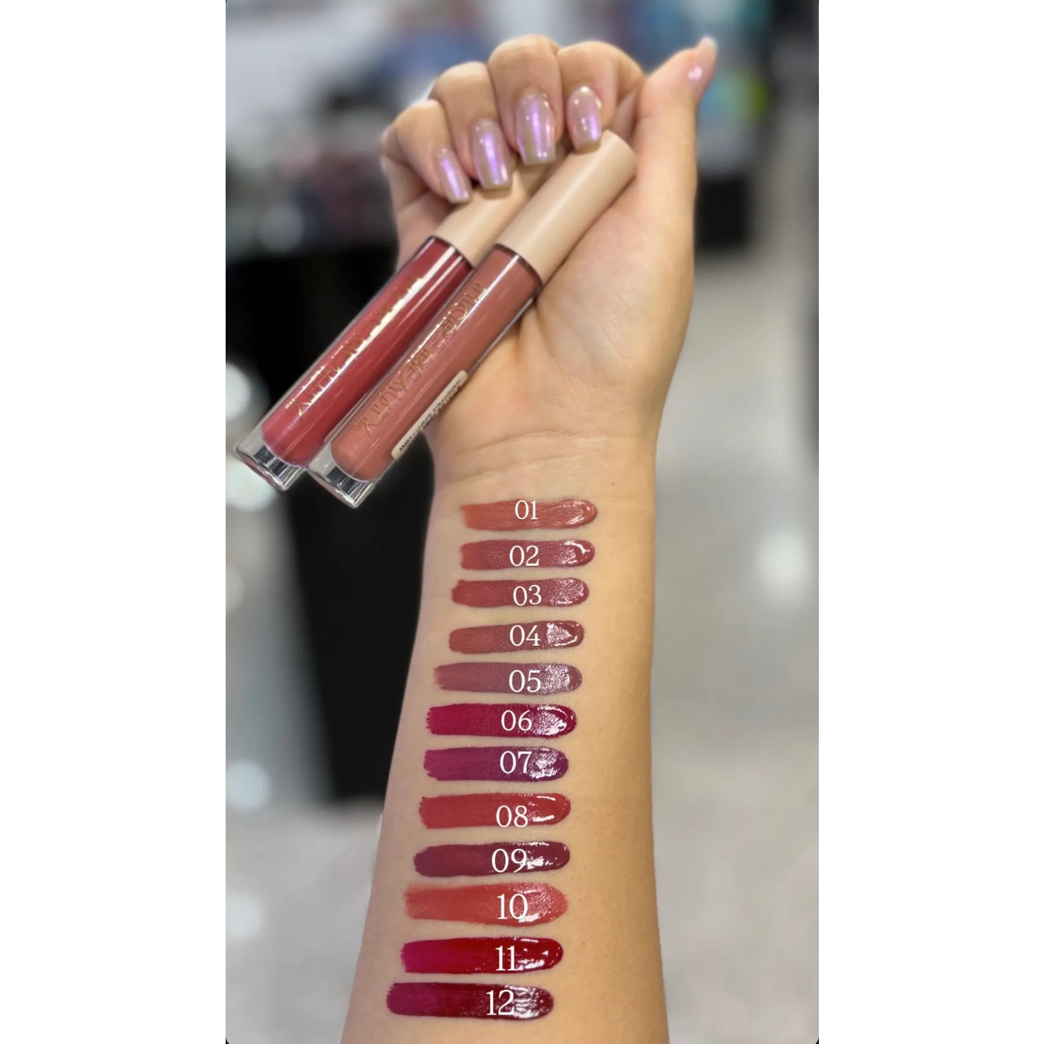 پایان کار: برای جلوه بیشتر میتوانید برق لب بیرنگ یا همرنگ روی رژ بزنید تا درخشش و حجم بیشتری ایجاد شود.