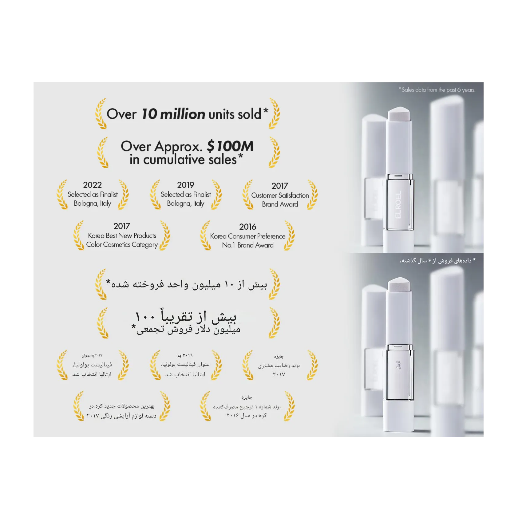 کرم پودر استیکی ELROEL Blanc Cover Stick V همان راز پوستهای شفاف و بینقص است که از درون میدرخشند ✨. این محصول با فناوری Color-Changing طراحی شده تا به محض تماس با پوست، از سفید به تناژ طبیعی چهرهتان تغییر کند و پوششی نرم، براق و یکدست بسازد — درست مثل فیلتر نوری روی صورتتان، اما طبیعیتر و زندهتر 💫